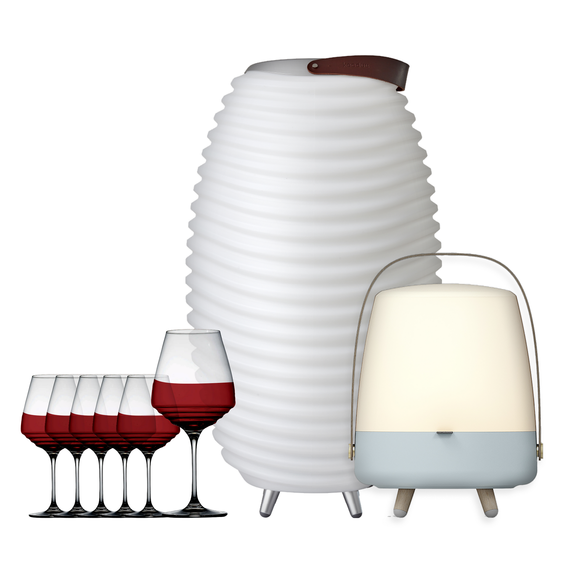 Featuring the Kooduu Synergy Wine Chiller to keep your favourite bottle perfectly chilled, the Kooduu's Lite-Up Play for ambient light and music, and two sets of elegant Zafferano Esperienze Wine Glasses (4 glasses total), this bundle brings together sophistication, functionality and style.
